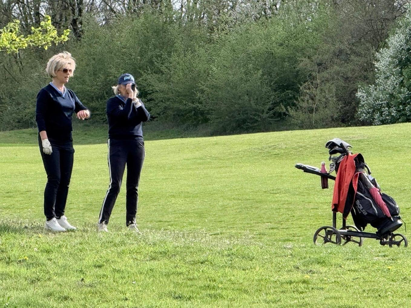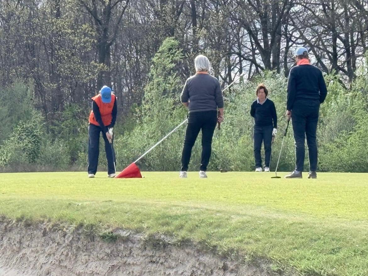 We gingen verder met de greensomes. Teamlid Miranda kwam kijken en zorgde voor morele ondersteuning. Judith en Karin verkochten hun huid inderdaad duur en verloren met opgeheven hoofd van de twee single handicappers.